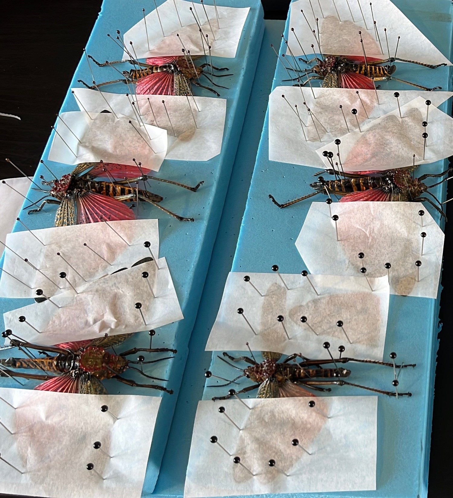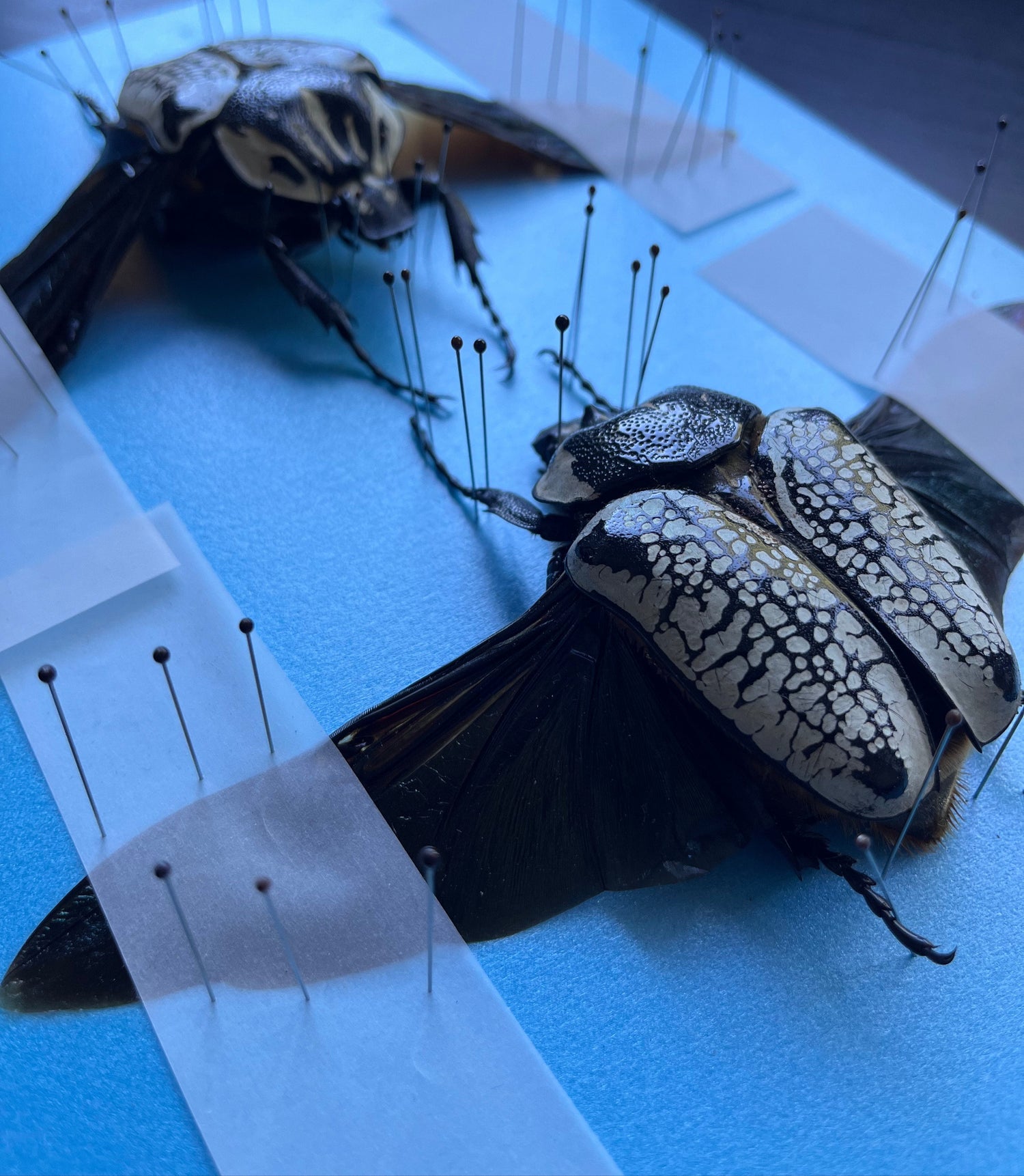 - Pin through the thorax using insect pins; support larger specimens with additional foam or backing.