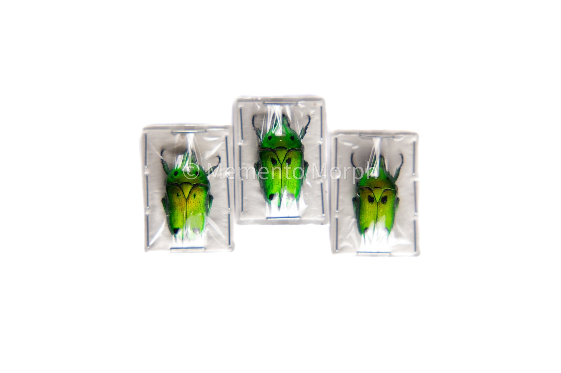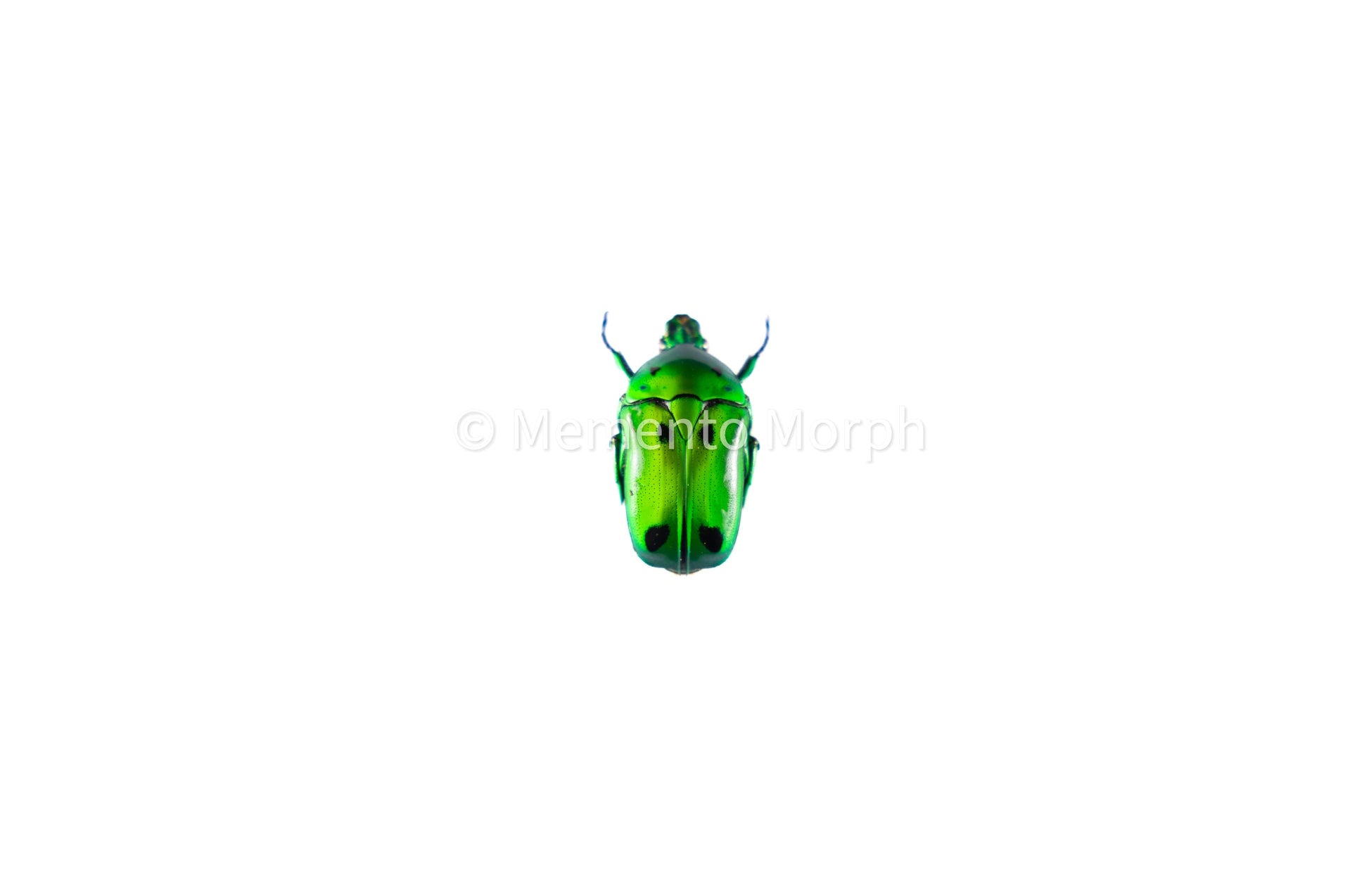 Heterorrhina Sexmaculata, a captivating flower beetle distinguished by its vivid metallic green body adorned with subtle black spots. Its glossy, iridescent surface reflects light beautifully, showcasing the natural brilliance that makes this species so sought after by collectors and enthusiasts.