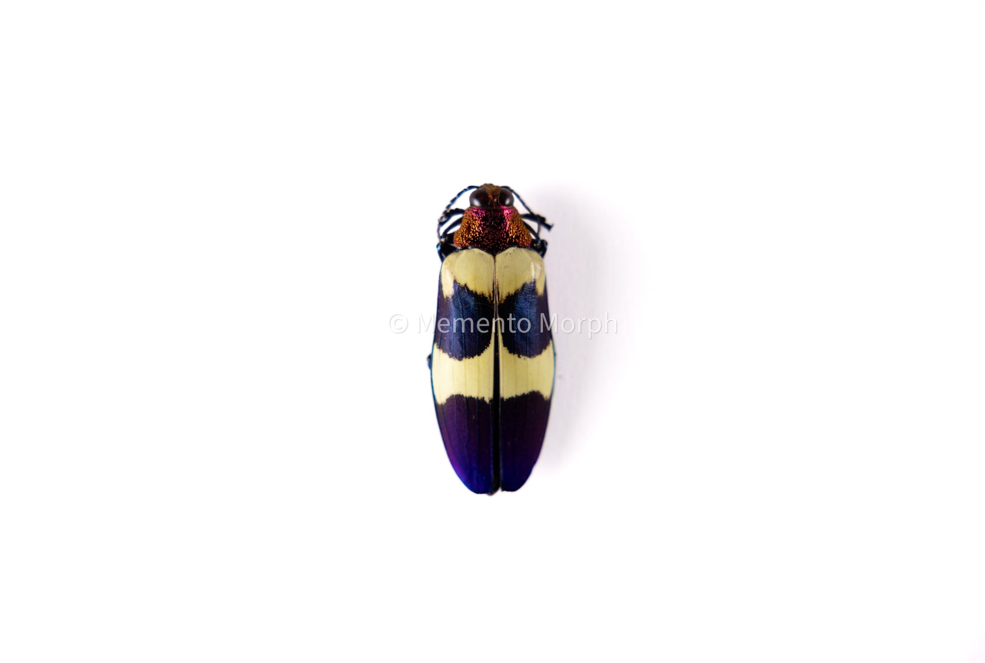Chrysochroa Buqueti, a dazzling jewel beetle commonly known as the Red Speckled Jewel Beetle. This species is native to Southeast Asia and is celebrated for its vivid, iridescent colors that shimmer in the light.