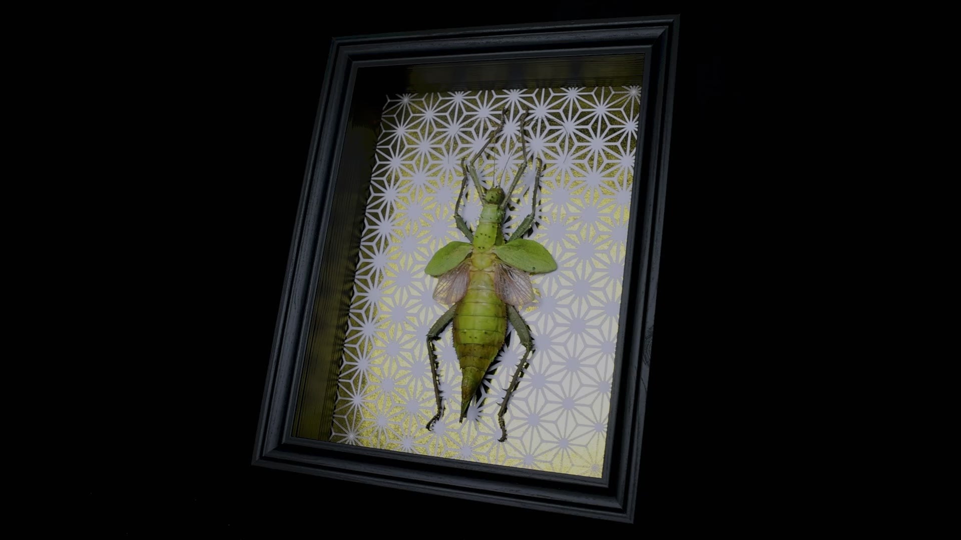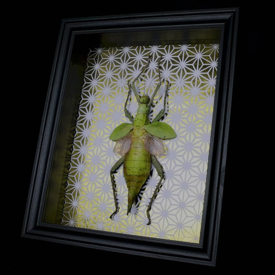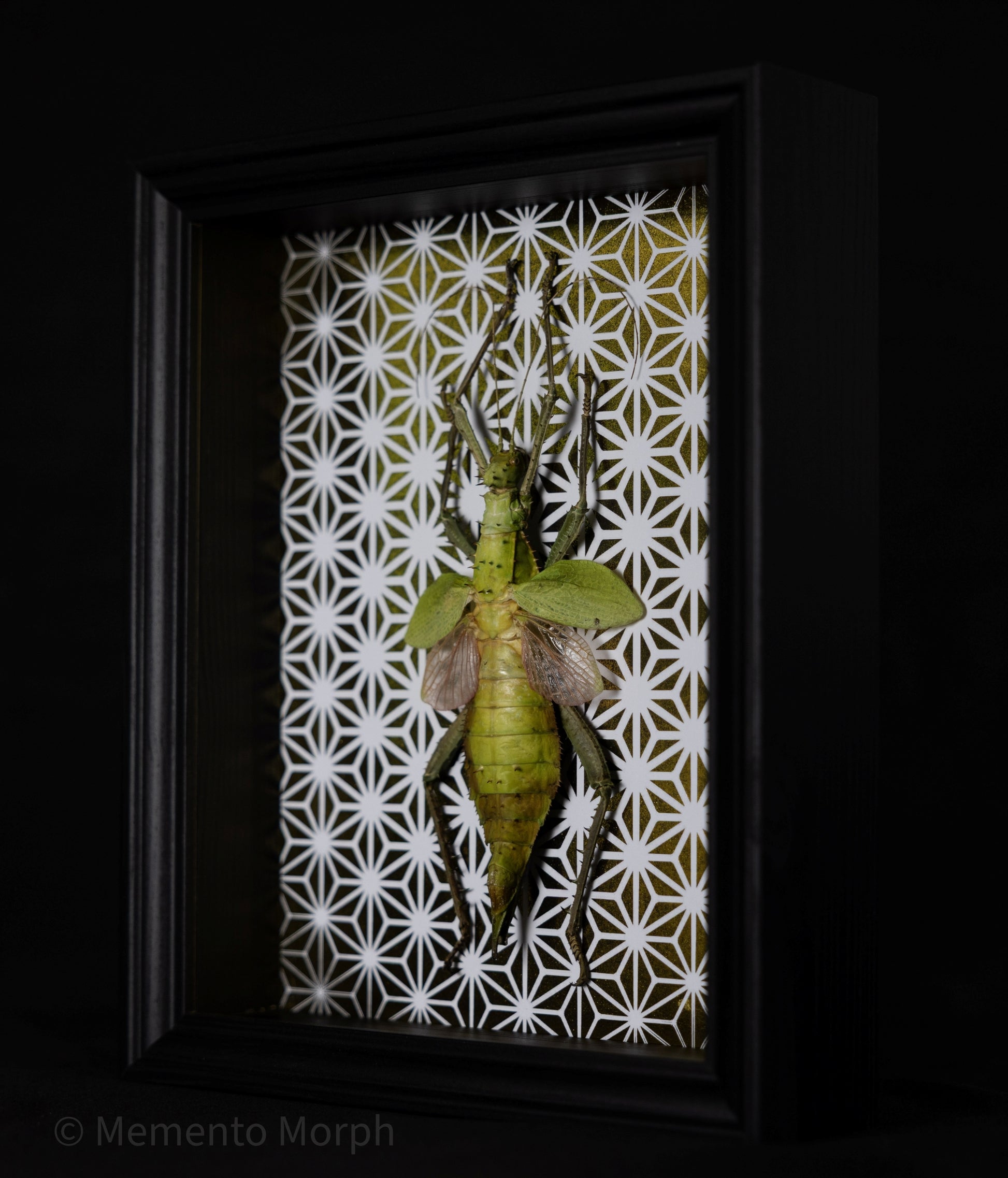 Framed Heteropteryx Dilatata with Gold Pattern Background