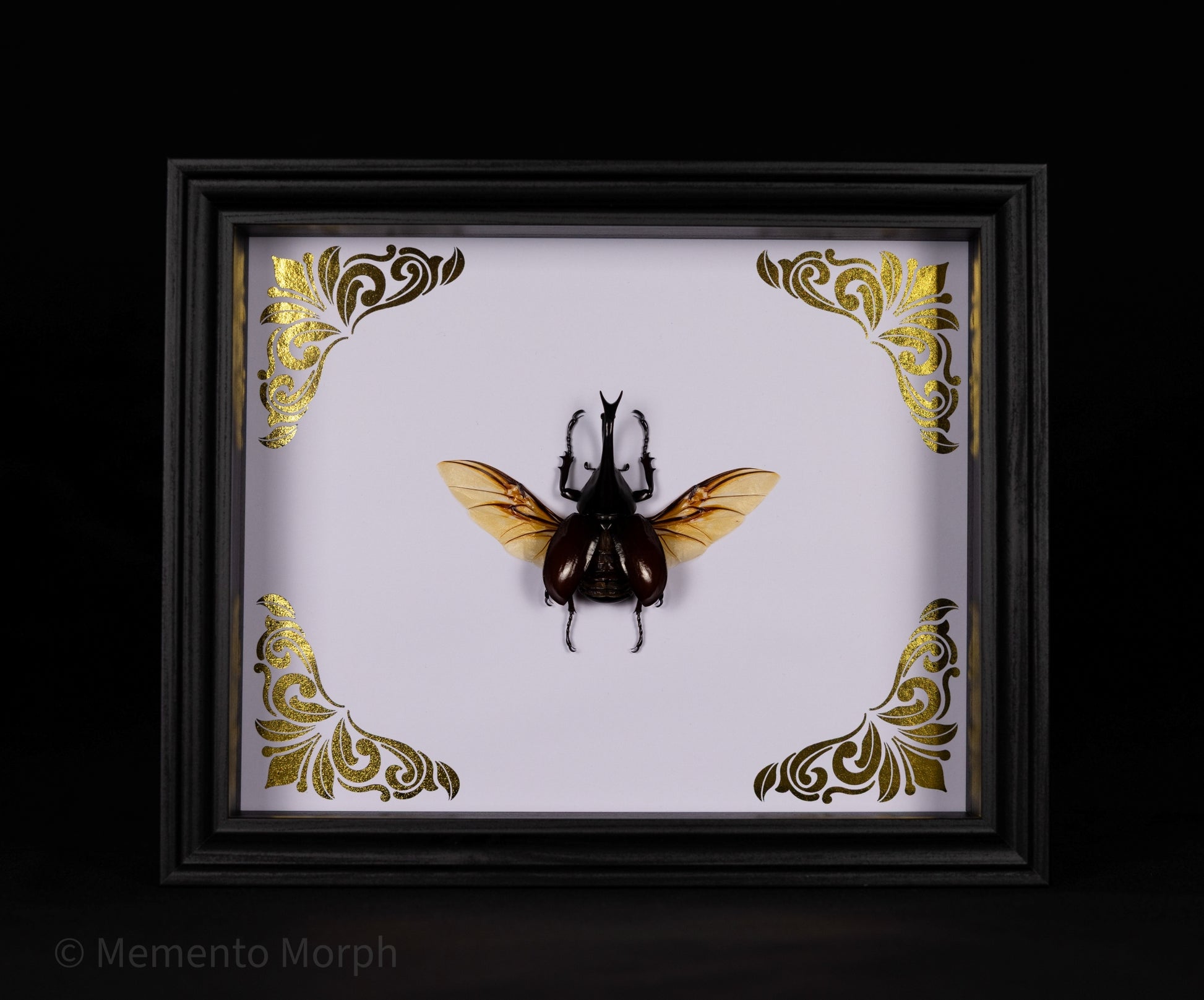 Framed Xylotrupes Gideon with Gold Ornamental Background