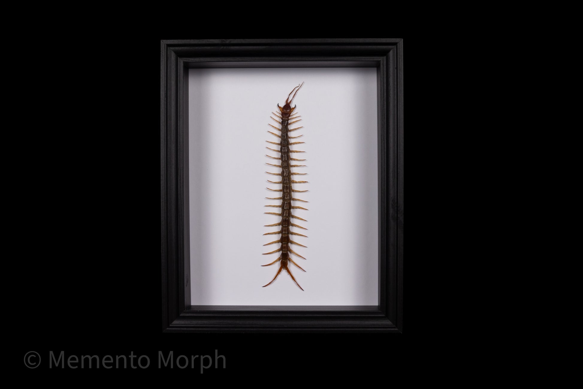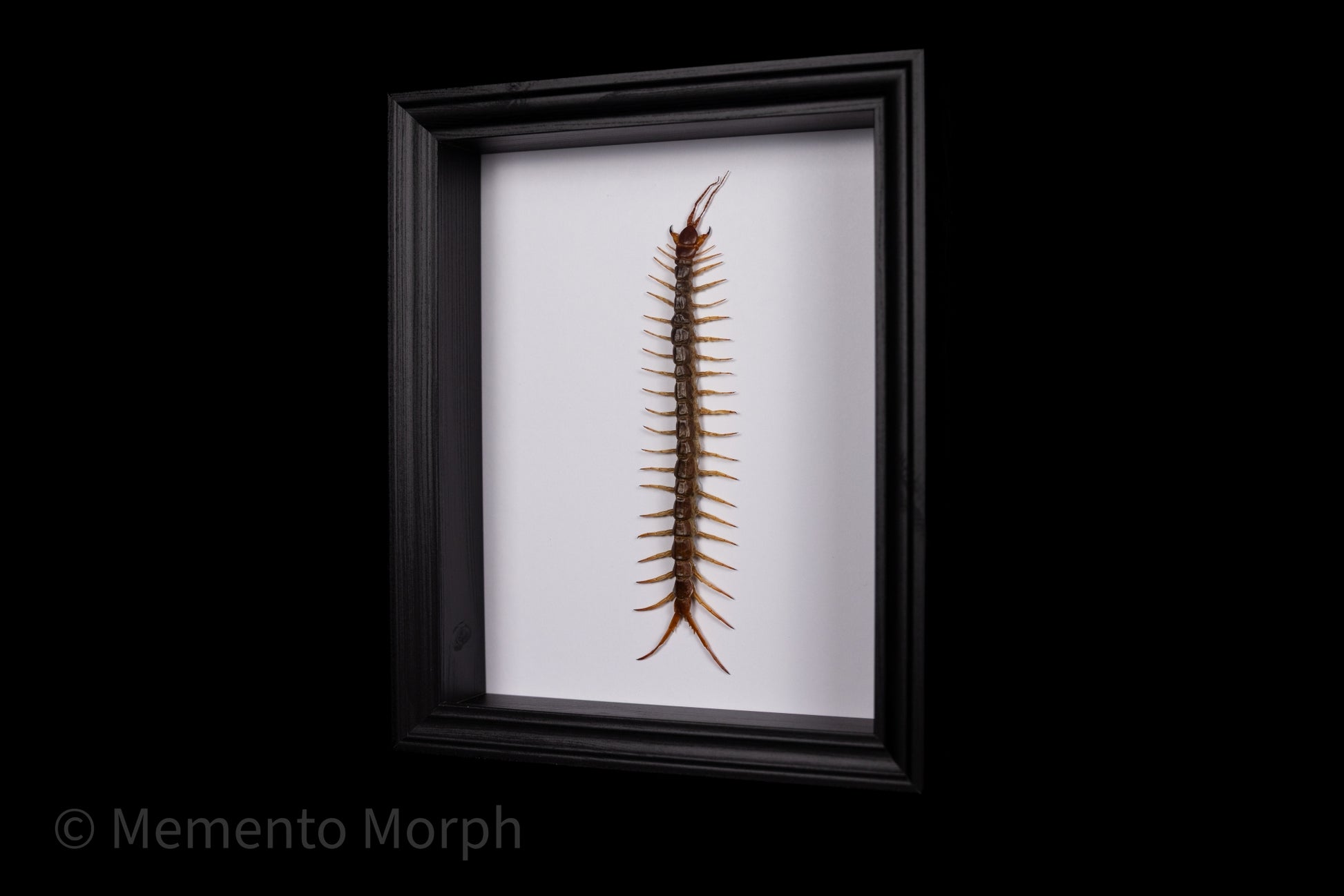 Scolopendra - also known as the Giant Centipede, mounted against a white background.