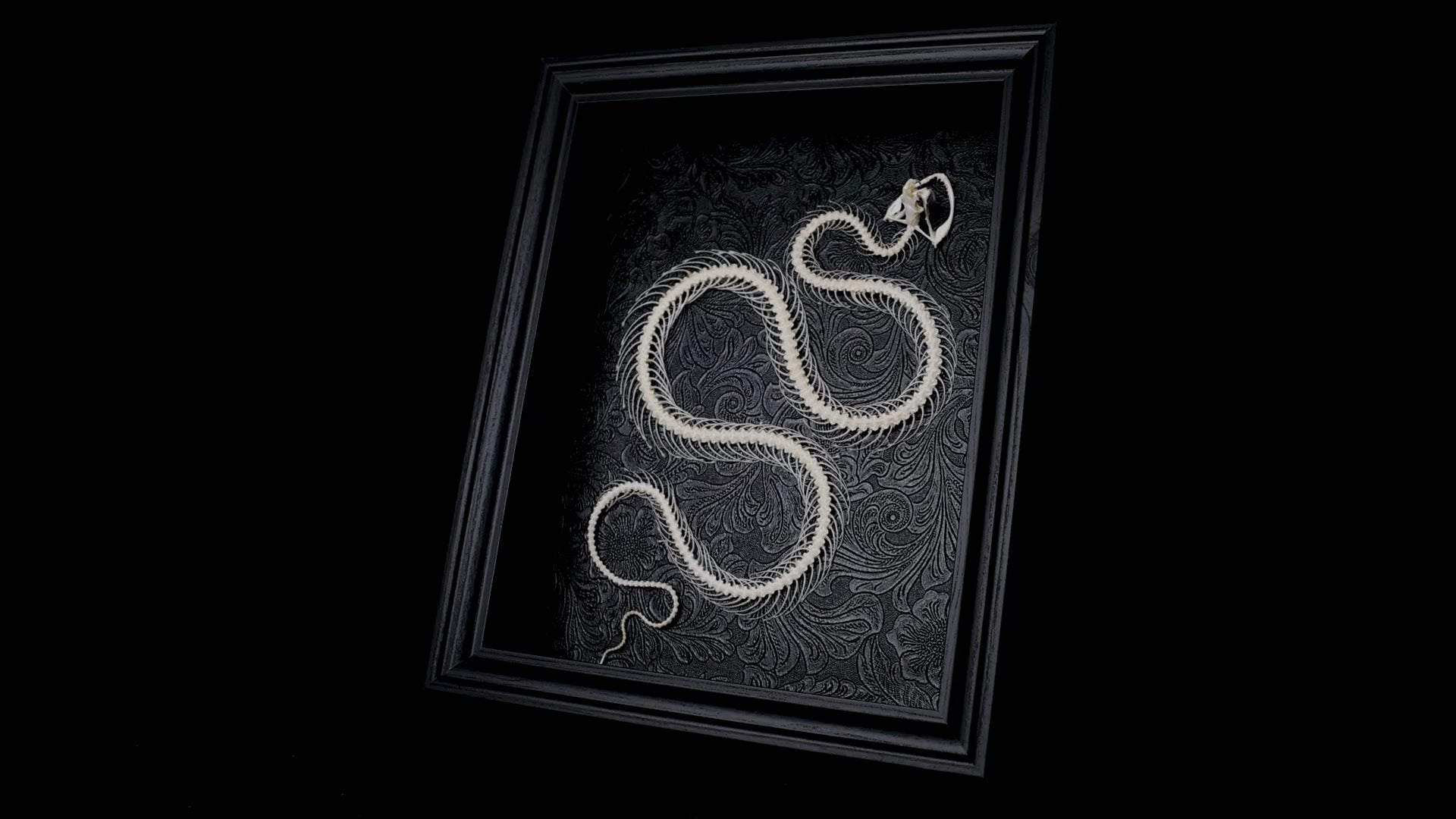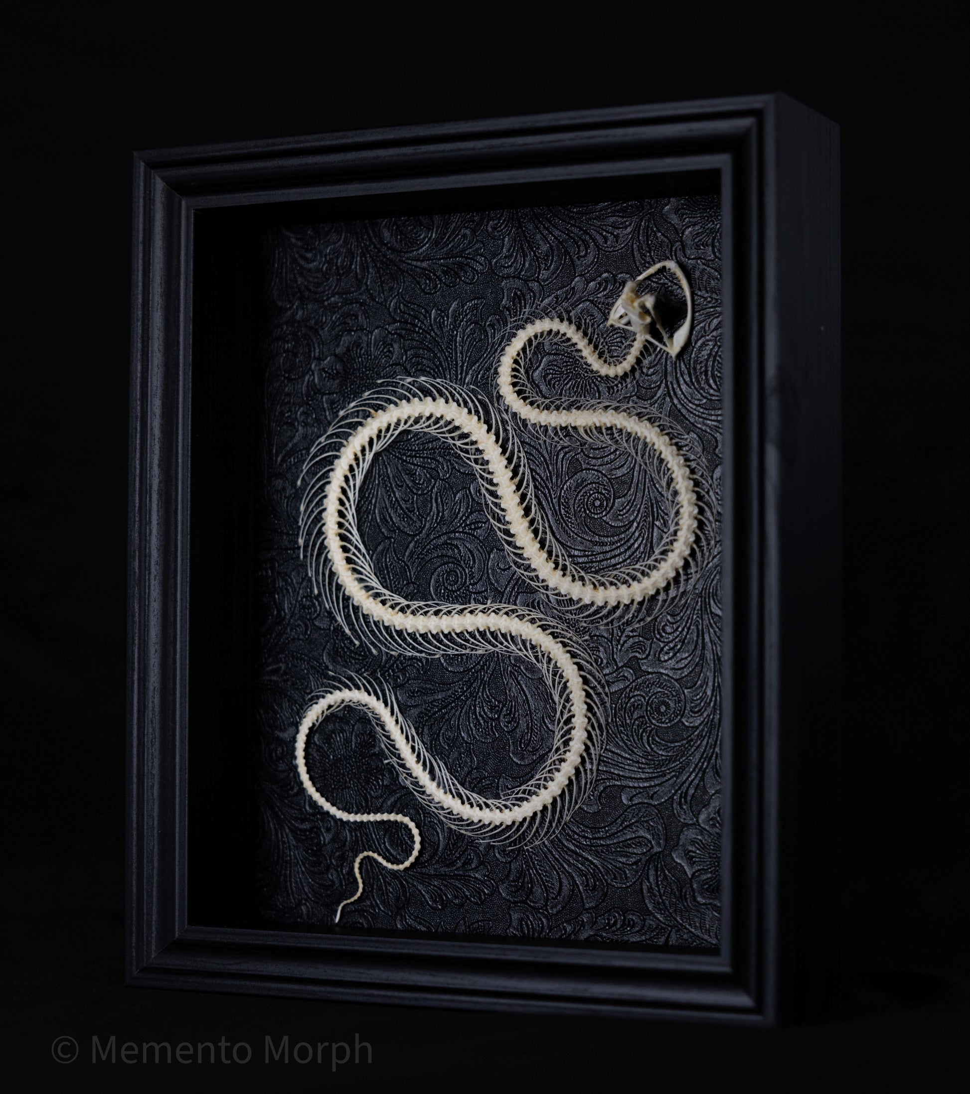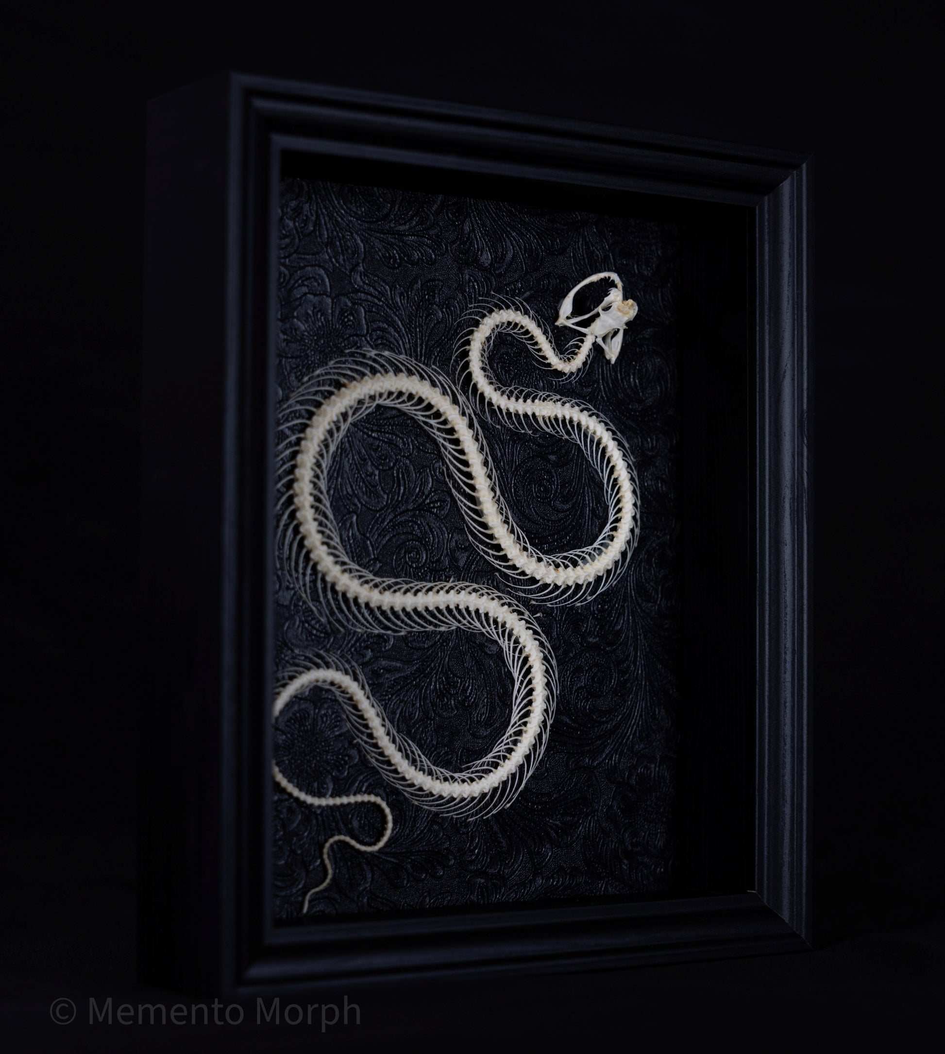 Framed Trimeresurus Albolabris Skeleton with Black Ornamental Background
