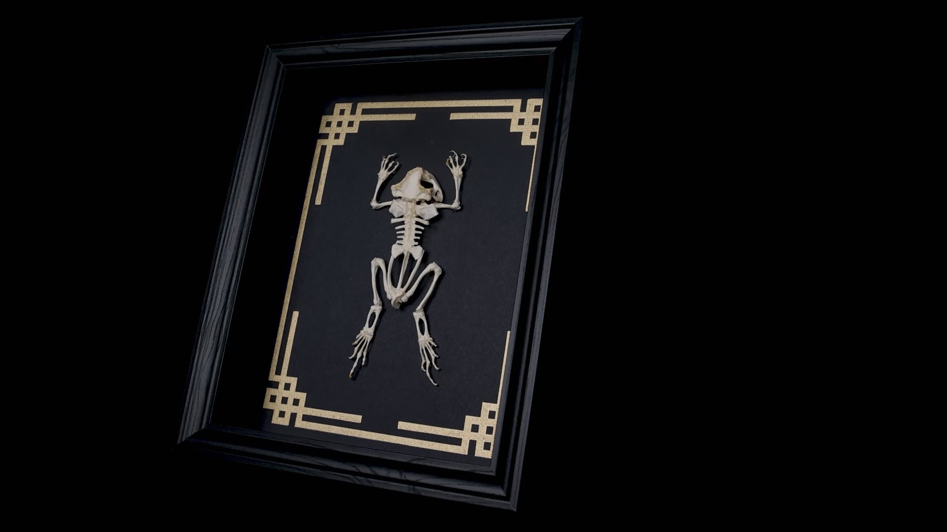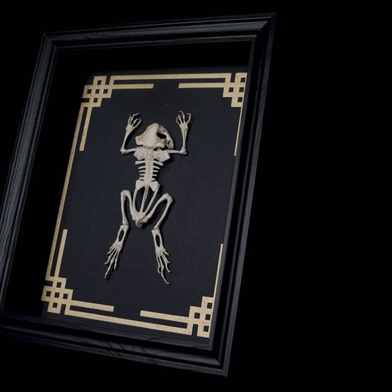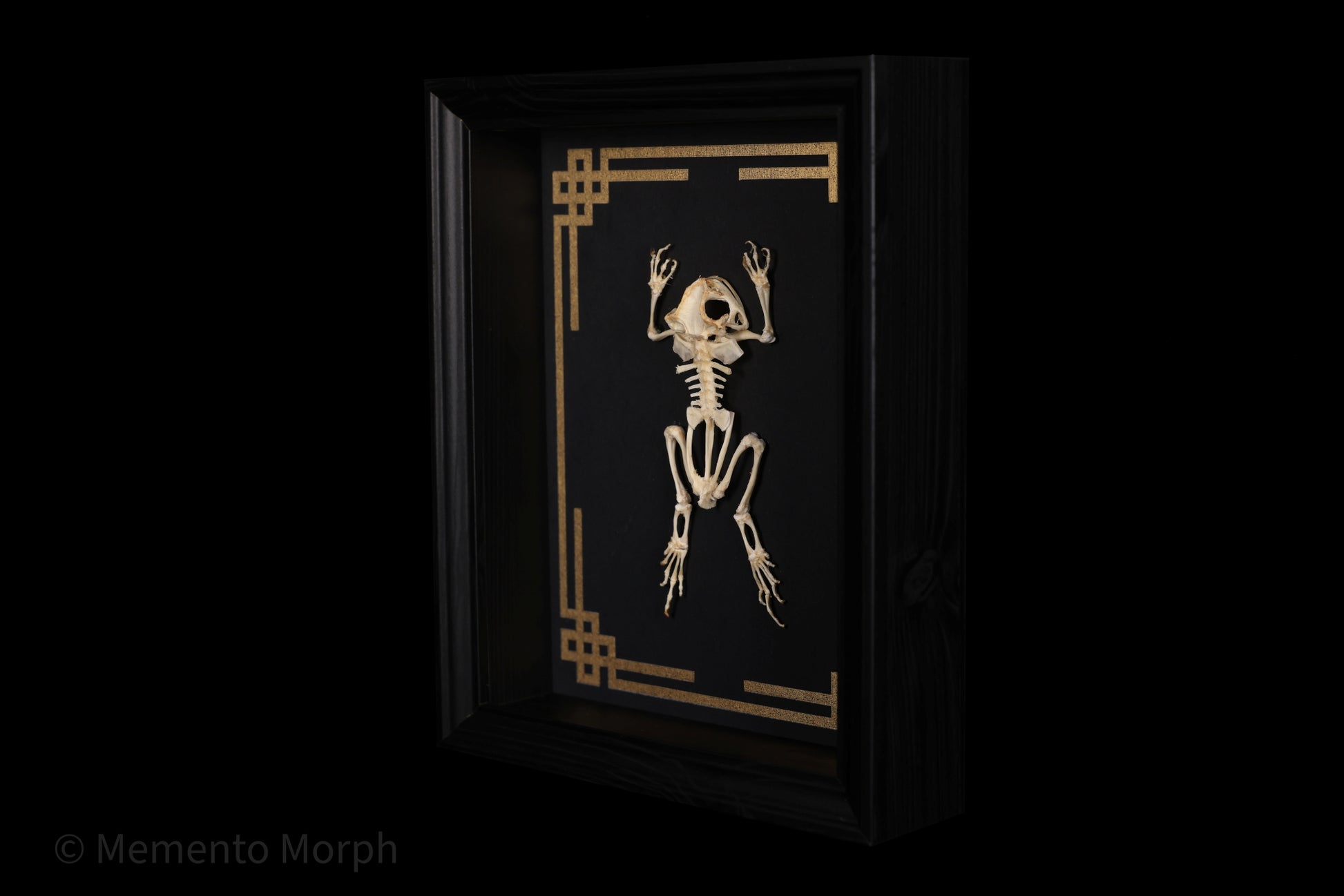 Framed Duttaphrynus Melanostictus Skeleton with Gold Japanese Ornamental Background