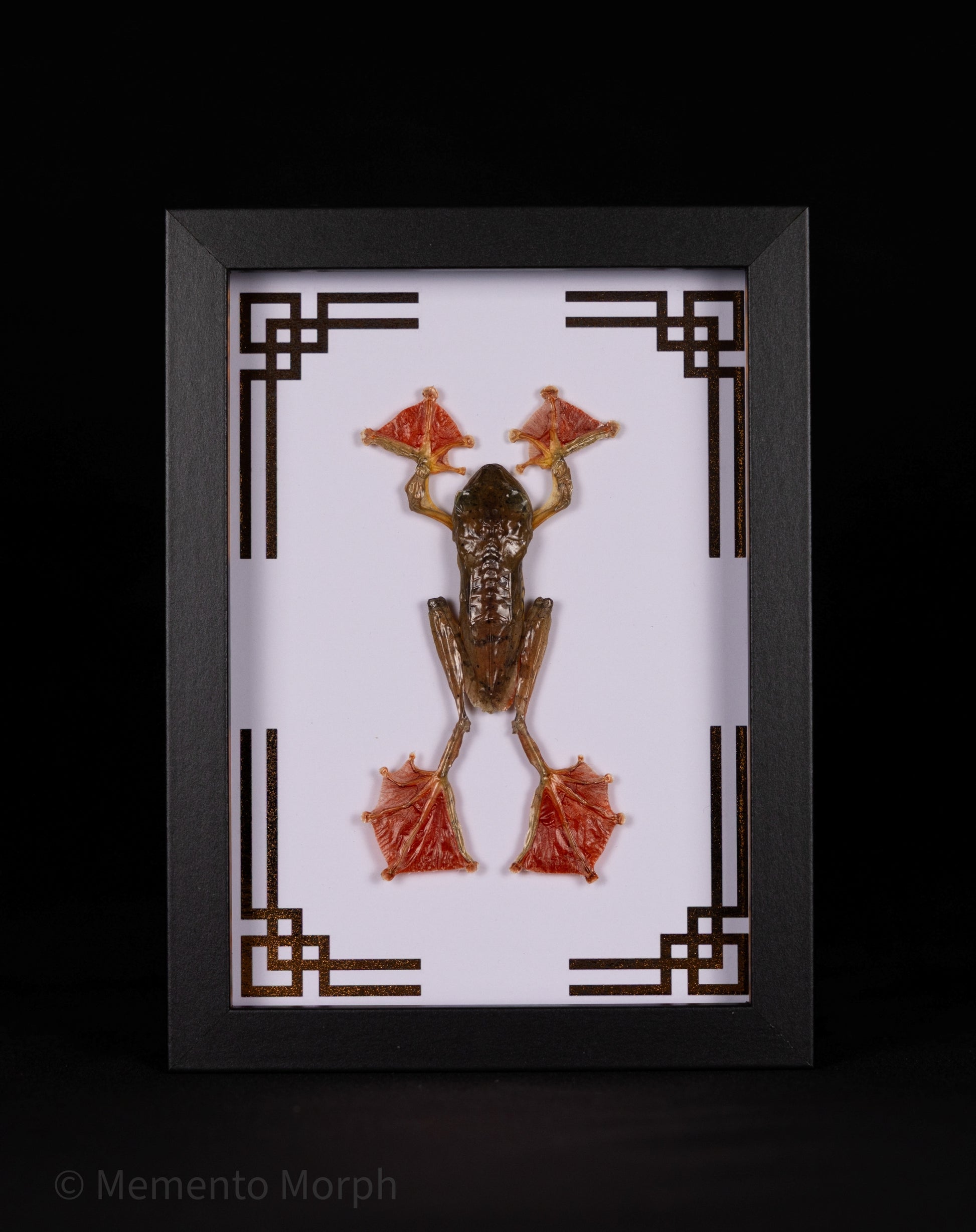 Framed Rhacophorus Pardalis with Copper Japanese Ornamental Background