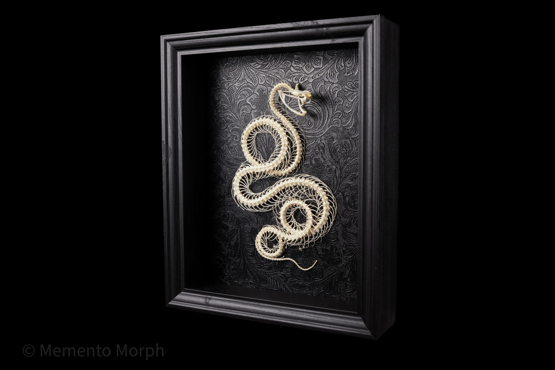 Framed Trimeresurus Albolabris Skeleton with Black Ornamental Background