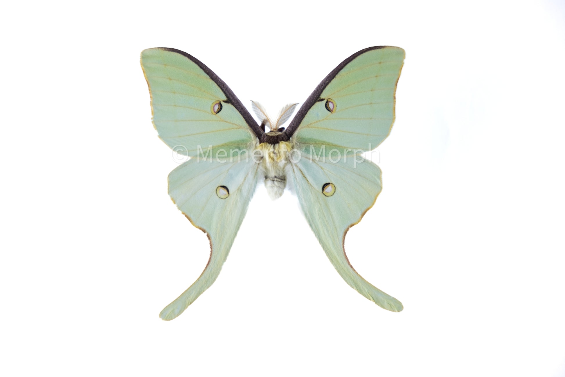 Actias Luna, the enchanting Luna Moth, revered for its ethereal pale green wings and graceful, trailing tails. Native to North America, this species is a luminous icon of the Saturniidae family, symbolizing transformation and the fleeting beauty of nature.